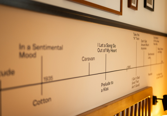 We invite guests to experience The Ellington Room, a tribute to one of Washington, D.C.’s most iconic cultural figures—Duke Ellington. This thoughtfully curated space features a rich collection of Ellington vinyl and wall decals that trace the story of his extraordinary life and musical legacy.
